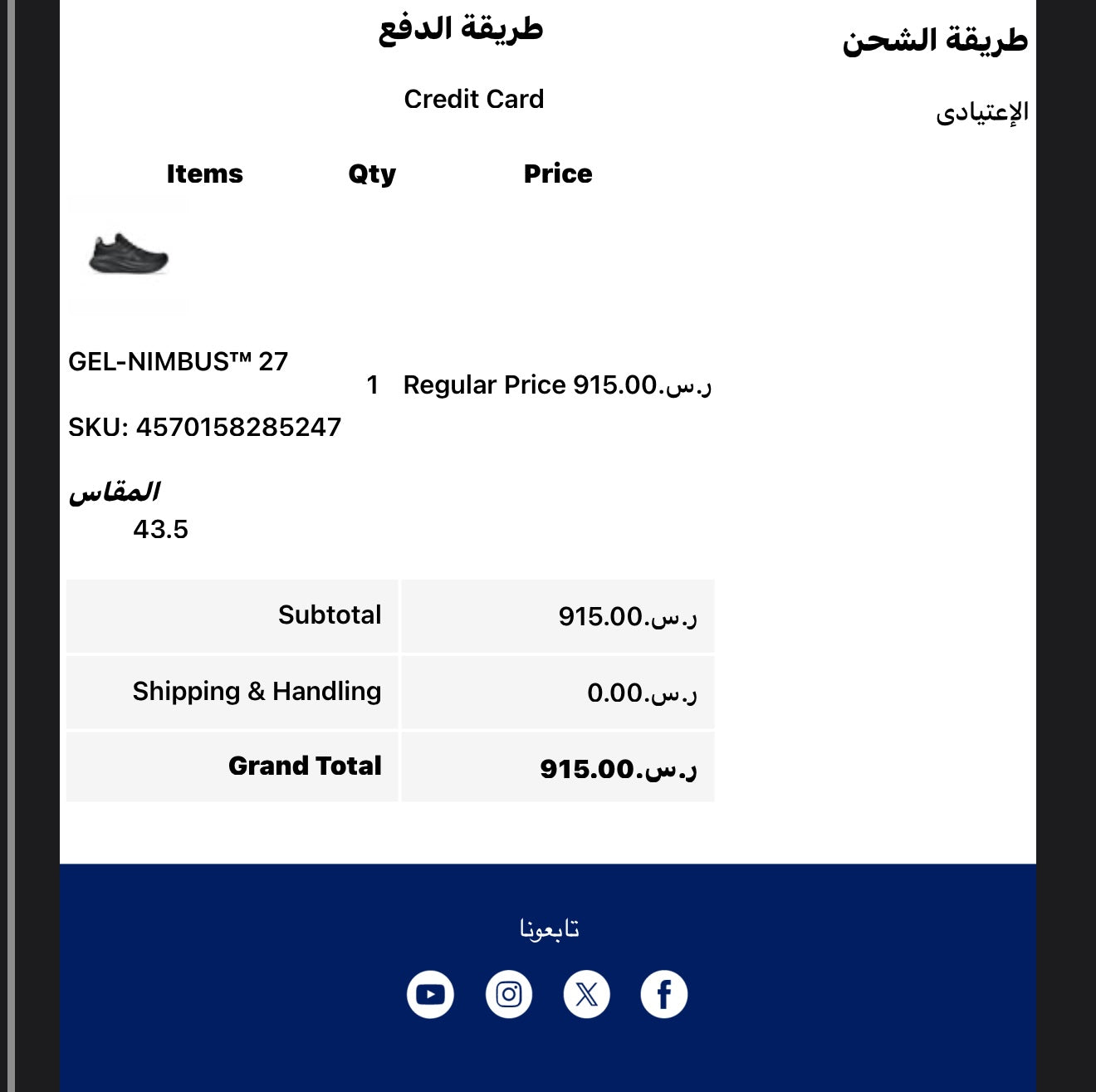 حذاء أسيكس نيمبوس 27 اخر اصدار لون اسود